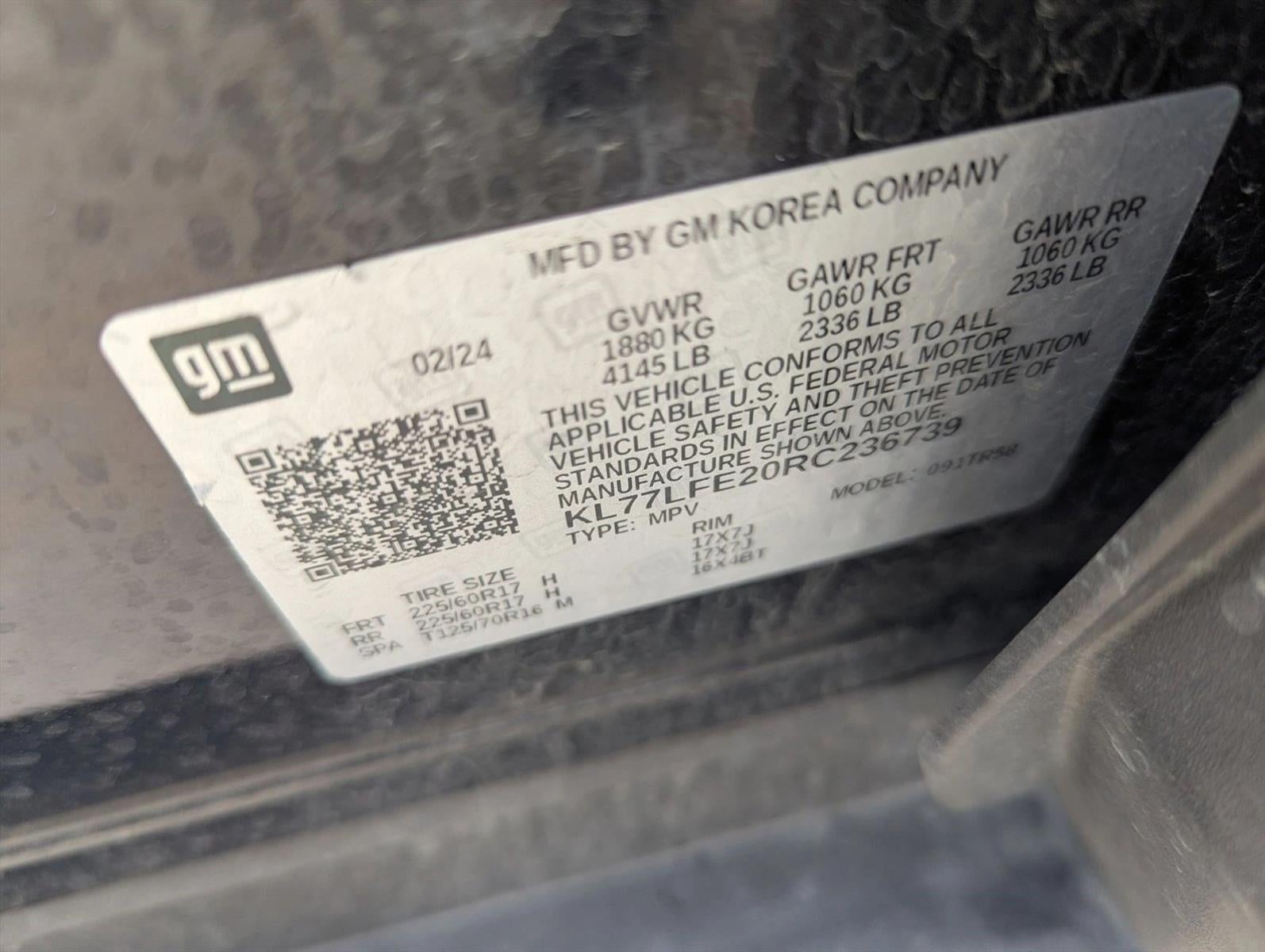 - Tires, 225/60R17 all-season, blackwall